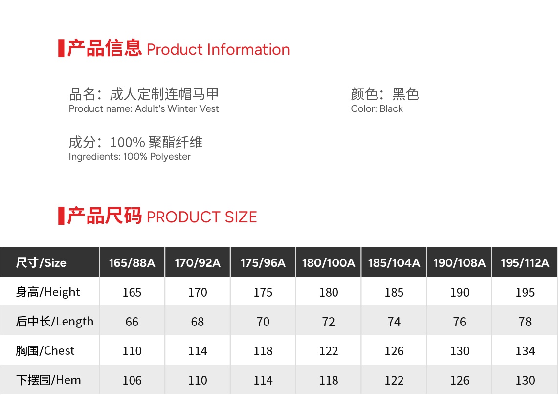 Size 165 or 170 or 175 or 180 or 185 or 190 or 195