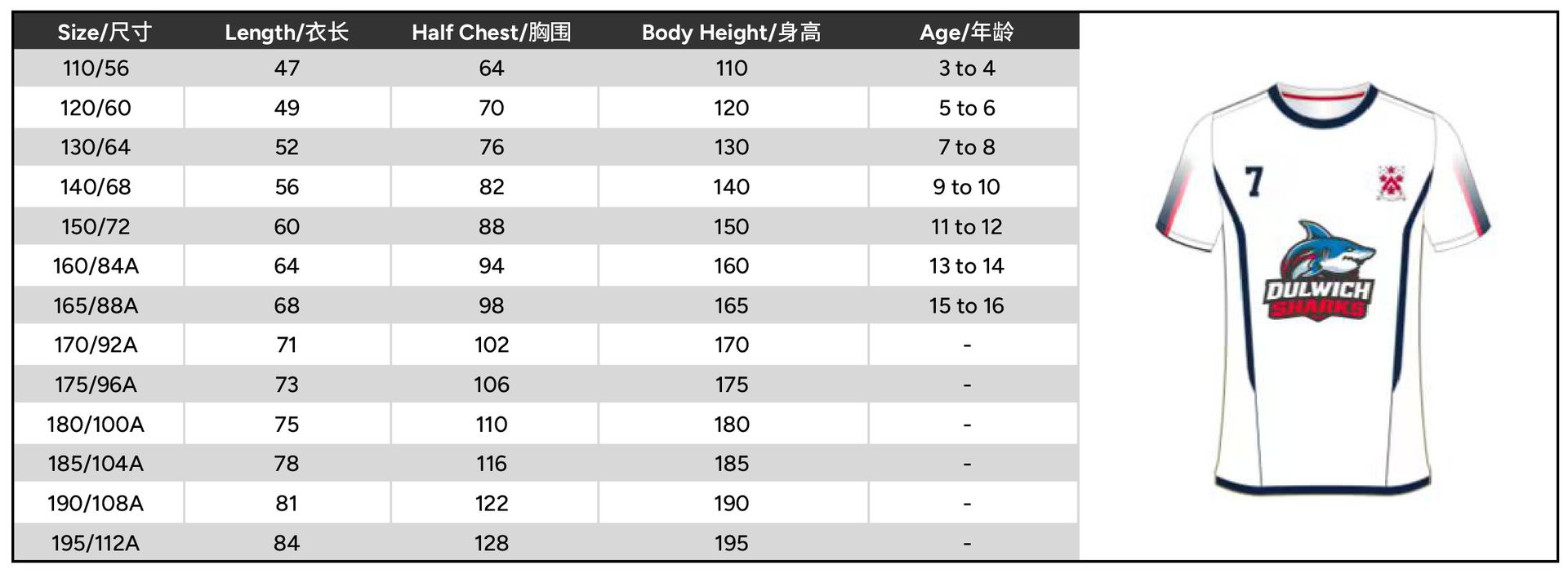 Size 110 or 120 or 130 or 140 or 150 or 160 or 165 or 170 or 175 or 180 or 185 or 190 or 195