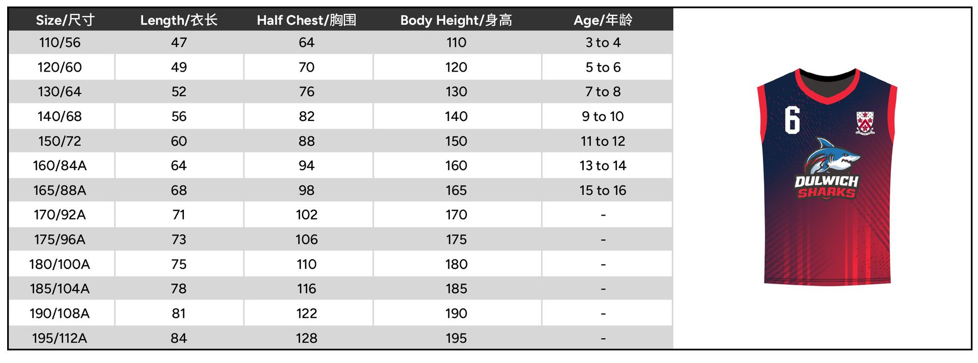 | Size | 110 or 120 or 130 or 140 or 150 or 160 or 165 or 170 or 175 or 180 or 185 or 190 or 195 |