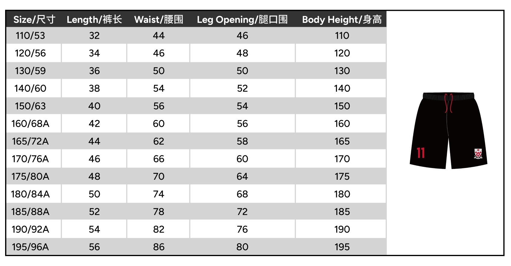 | Size | 110 or 120 or 130 or 140 or 150 or 160 or 165 or 170 or 175 or 180 or 185 or 190 or 195 |