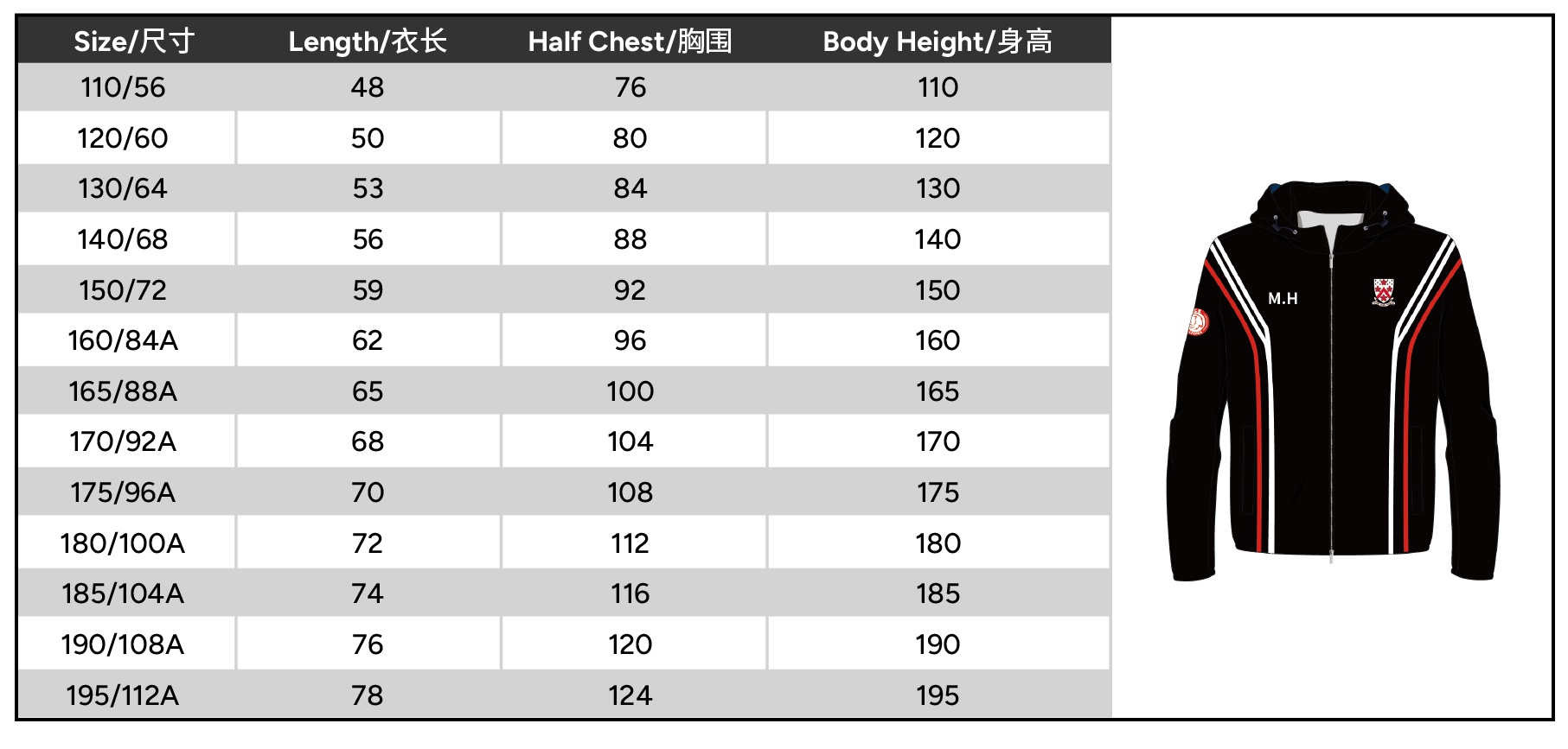 | Size | 110 or 120 or 130 or 140 or 150 or 160 or 165 or 170 or 175 or 180 or 185 or 190 or 195 |