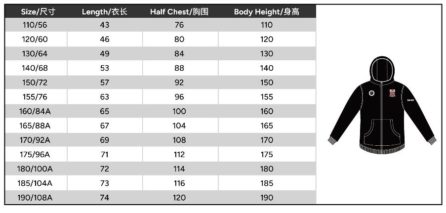 | Size | 120 or 130 or 140 or 150 or 155 or 160 or 165 or 170 or 175 or 180 or 185 or 190 |