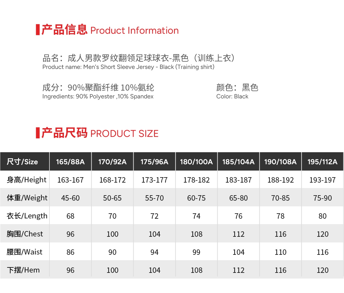 Size 165 or 170 or 175 or 180 or 185 or 190 or 195